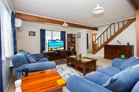 This very cute and attractive 1990's home on a private back section is deceiving to look at but it boasts 4 good sized bedrooms and a study. Open plan living downstairs with kitchen off the dining and lounge. Double doors open out to the patio, lawn and bbq, and enjoys the late west setting sun. Two bedrooms are on the lower floor with the family bathroom with shower over the bath. Upstairs two double bedrooms and a study and second bathroom with separate shower. Two toilets, separate laundry, two heat pumps, Rinai hotwater and gas heating. Drive on to carport and extra parking space. This property is about three minutes walk to the bus stop and handy to Miramar North School. Stroll down to the local café's, restaurants, garden centres and Weta or take a short pleasant walk over the hill to the local beaches. This is a perfect starter home. You can't afford to miss out on this one so call me now for your appointment to view. Lim report available.