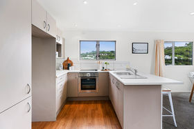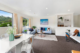Bathed in all day sun, in an elevated position, this lovely stylish and modern three-bedroom home, presented in pristine condition, will become your happy home. On the ground floor are two double bedrooms with good wardrobe space, and one single bedroom. Bathroom with shower over bath and hideaway laundry with whiteware. Upstairs is gorgeous open plan living flowing out to a large entertainer's deck, facing north and overlooking an attractive garden and lawn. Trendy kitchen with gas hot water, new oven and bench top. Freshly painted inside and out, new drapes and new carpet downstairs. The property has lovely views over Miramar and is on the bus route. Off street parking for two small cars. The property has been wired for network in every room. This home will be vigorously sought after by young families and professionals working at Weta, so don't delay in calling me today to view personally. LIM and Builders report available. Open homes Sunday 12.00 - 12.45pm.