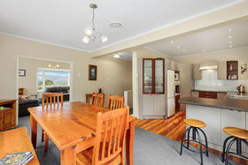 This spacious family home has five bedrooms and two bathrooms: plenty of room for everybody to live their lives and do their thing. The huge back yard is a securely fenced child's wonderland with lawn, trees, bush and birdsong. From the generous open plan living you have views of the harbour on one side or French doors to the deck overlooking the garden on the other, giving the best of everything. That complete with the modern kitchen makes this a grand area for entertaining and family get-togethers. Add to this an internal access double garage and room at the side of the house to put a campervan or trailer, everything a family needs - call to view now!