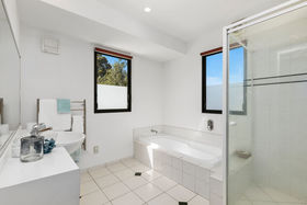 Boasting five spacious bedrooms, the downstairs bedroom with sizeable ensuite and the upper bedrooms each having access to a sunny balcony, the whole feel is one of elegance and space. The master bedroom is huge with a luxurious ensuite, large spa bath and generous sized shower. The walk-in-wardrobe has room for you to try on your outfits with freedom to move.