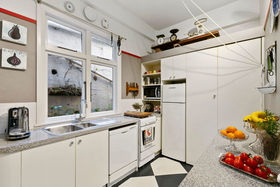 Simply put this apartment has that very special feel of the French Art Deco period c.1930. Nurtured by the current owners and tastefully renovated and redecorated throughout. Its designed for entertaining and city living with a beautifully proportioned living room, a handsome kitchen, and a bathroom with both shower and bath. Two garages. No Body Corporate fees. This superb location is quiet, and the city and every amenity are so convenient.