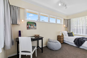 This home has 4 bedrooms, 2 living rooms, 2 toilets, single garage and additional off street parking and a big flat 772m2 fully fenced section for your children to play and let off steam.