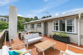 1970's weatherboard home with open plan dining and living overlooking speculator views as far as the eye can see taking in the Hutt river and through to Wellington harbour. Three double bedrooms, separate kitchen with access to the large private deck, great for entertaining and watching the kiddies play. Add to this bathroom with separate bath and shower, separate WC and laundry plus garaging and extra parking for two more cars. If you love entertaining and a view see this one.